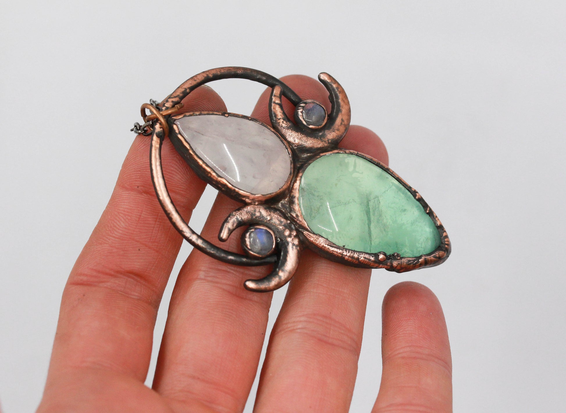 Fluorite, Rose Quartz & Moonstone Moon Necklace